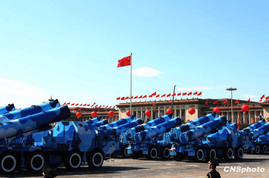 阅兵式上最惹人注目的是中国计谋导弹部队的初次公开表态,标记着中国正式具备靠得住的二次核冲击能力,成为具有计谋威慑力的核大国。此次受阅兵器配备绝大部门为中国自从研制,国防科技程度显著提拔。