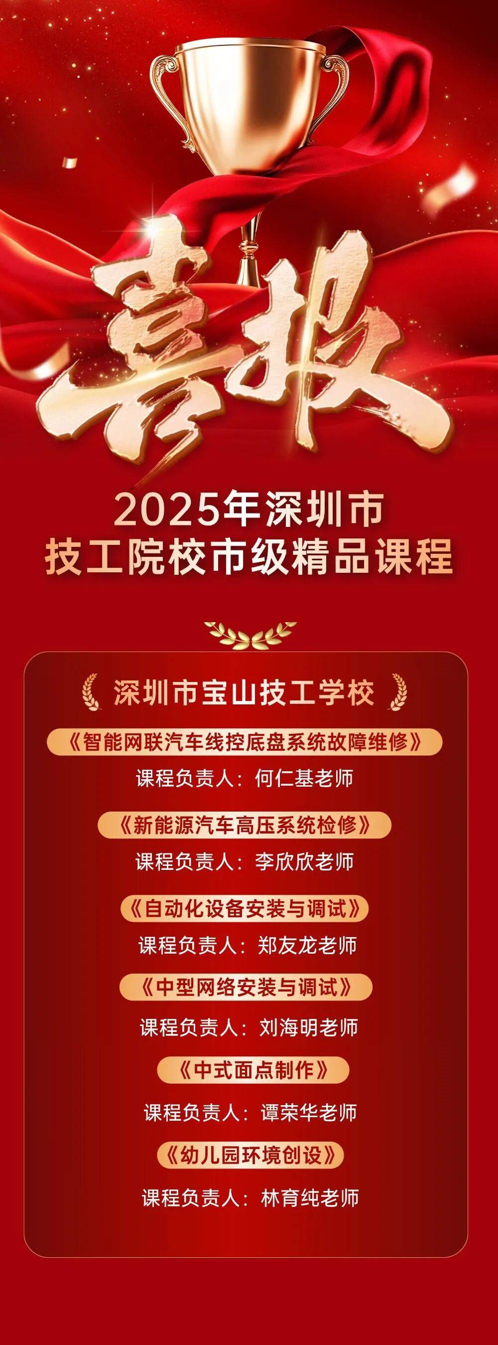 近日,2025年深圳市技工院校市级精品课程名单正式揭晓,深圳市宝山技工学校凭仗杰出的讲授实力和前瞻的课程设想,这是对我校讲授质量取课程扶植程度的高度承认。本次入选的课程紧跟深圳“20+8”财产集群成长脉搏,展示了学校正在培育高本质手艺技强人才方面的硬核实力。一路来看看这些“王牌课程”吧!此次精品课程的成功入选,是荣誉,更是敦促。宝山技校将以此为契机,打制更多对接财产、办事社会的优良课程,为深圳经济社会高质量成长和现代财产系统扶植贡献更大的“宝山力量”!前往搜狐,查看更多?。